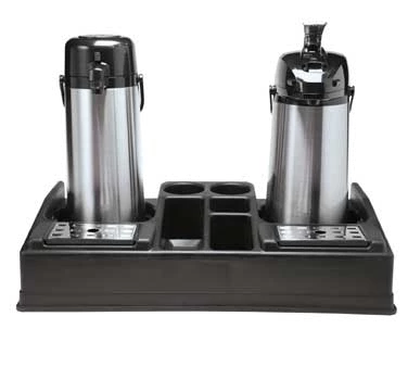 Thanks to its 5 compartments, standard coffee condiments and supplies are kept organized and easily accessible. For unbeatable durability, this dual airpot station is made from high quality black plastic that looks great as part of any setting.