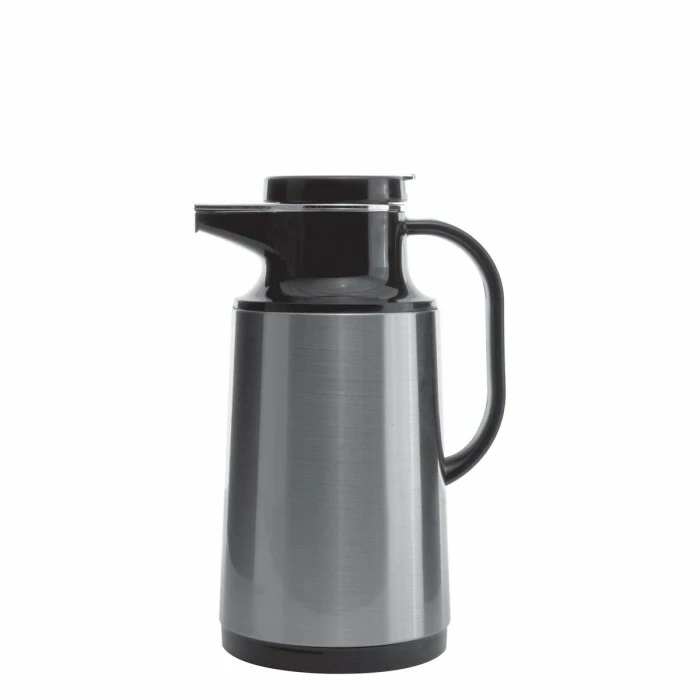 Conveniently serve a steaming cup of coffee at your cafe, restaurant, or catered event with the Service Ideas HPS161 Coffee at a Touch Carafe, 1.6 Liter. Featuring a glass vacuum insulation, this product retains hot and cold temperatures for 6-8 hours. Combining style and durability, it has a brushed stainless steel shell that withstands heavy duty use and a clear coat finish that minimizes fingerprints and water spots so it always looks brand new.