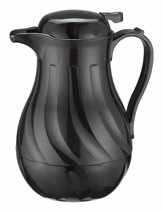 A charming addition to restaurants or catering services, the Winco VSW-42K Black Insulated Plastic Beverage Server 42 oz. is great for serving hot beverages. Featuring tags for regular coffee, decaffeinated coffee, or tea, this server allows guests to quickly identify its contents.