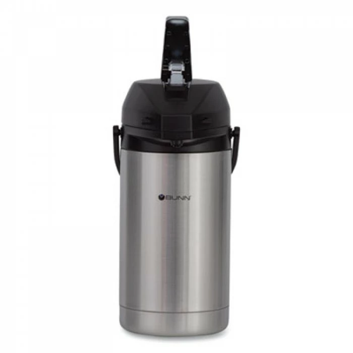 Perfect for serving coffee at breakfast stations, break rooms, and coffee shops, the BUNN Stainless Steel Lever Action Airpot 3 Liter is an excellent addition to any food service establishment. Featuring a rust-resistant stainless steel interior and exterior, this airpot will withstand daily use while adding a contemporary, professional look to any setting.