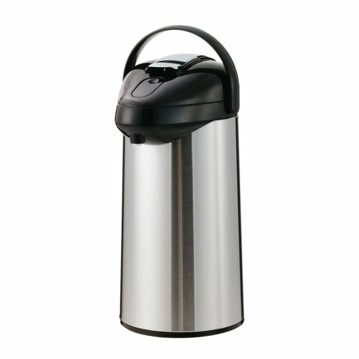 This item has excellent heat retention thanks to its glass-vacuum insulation and will keep the stored drinks hot for up to eight hours. For easy dispensing of coffee, this piece is equipped with a convenient lever lid. Orange lids are also available for storing and serving decaffeinated brews. To keep this airpot in great condition for a long period, hand washing is recommended.